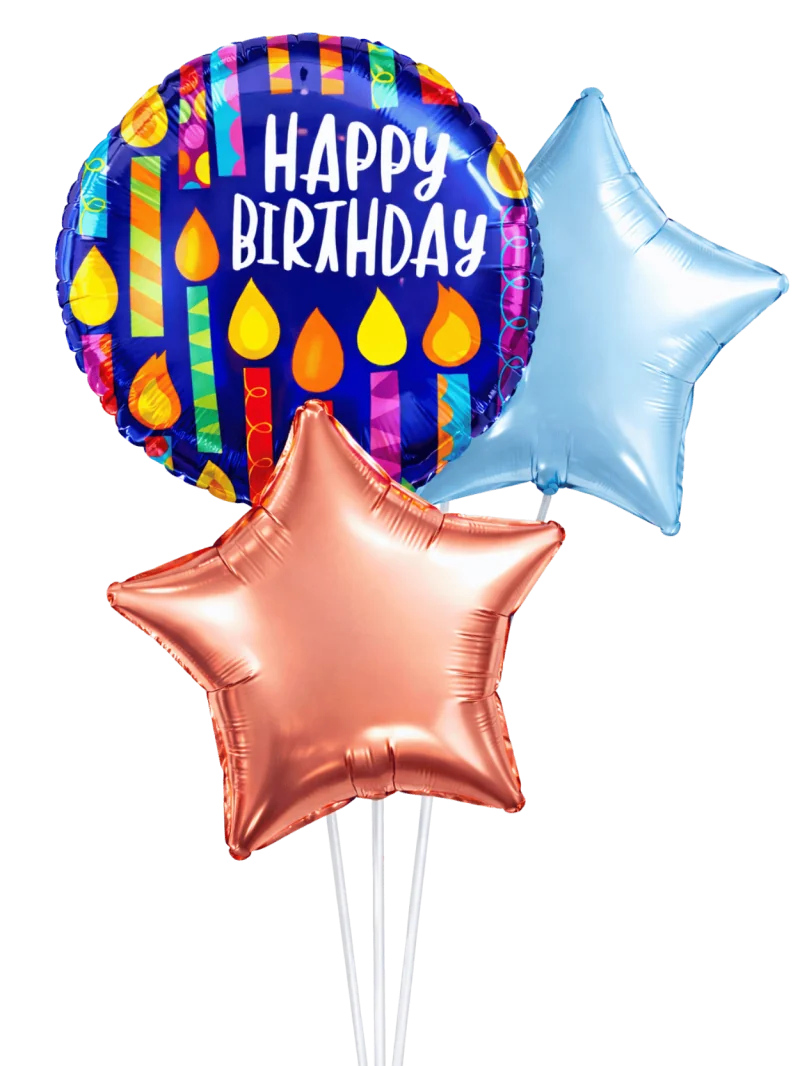 El perfecto complemento para tus regalos! Dale un toque especial con este arreglo de tres globos. Uno impreso a seleccionar de nuestro catalogo y dos estrellas que lo resalten. Bouquet de globo especial y esencial