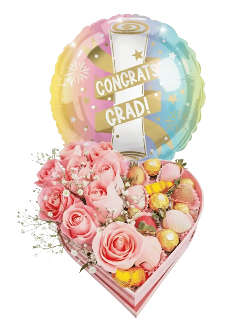 Increíble regalo de graduación para sorprender en CDMX, este regalo lo tiene todo!, colores únicos, y una deliciosa variedad de flores y chocolates.