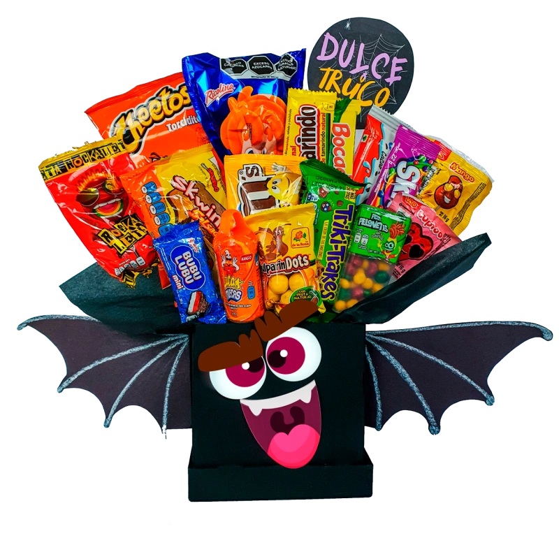 Divertida calaverita de dulces, ideal para alegrar a niños y grandes en halloween!, creativa cajita con forma de vampiro y con una deliciosa combinación de dulces.